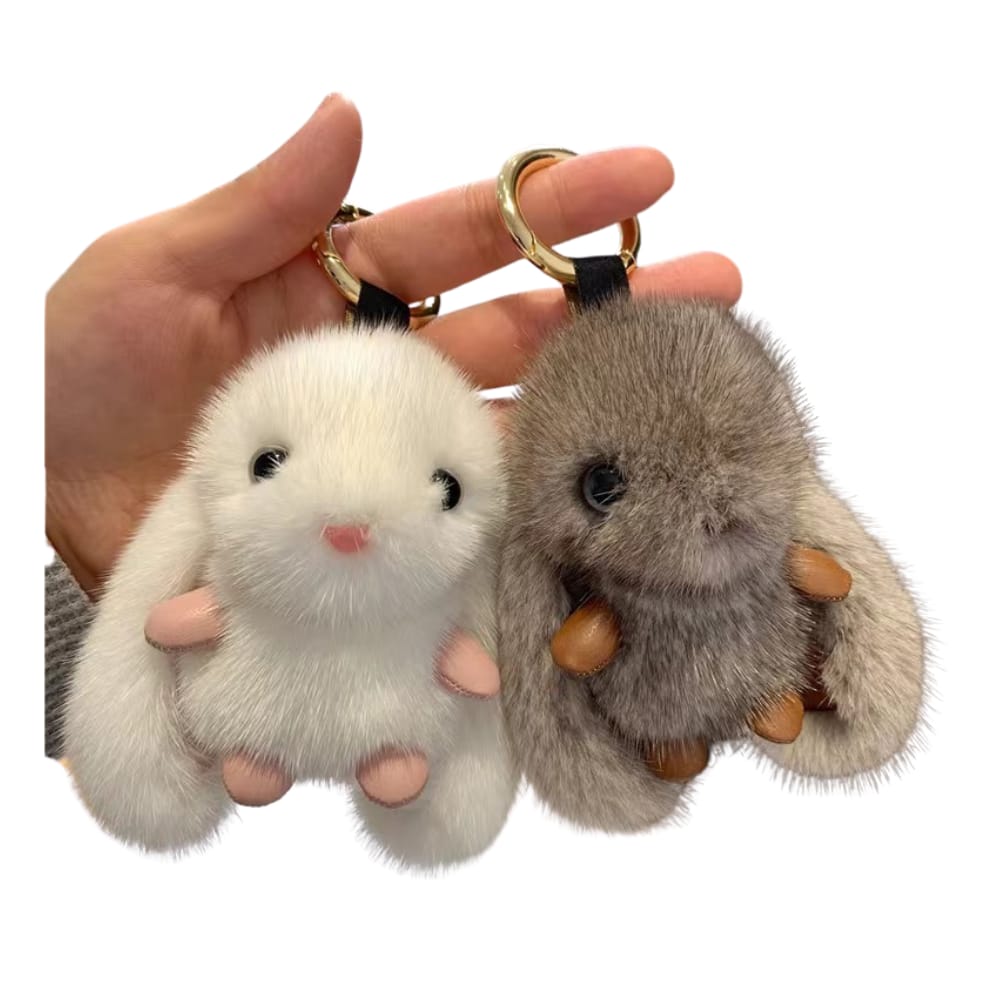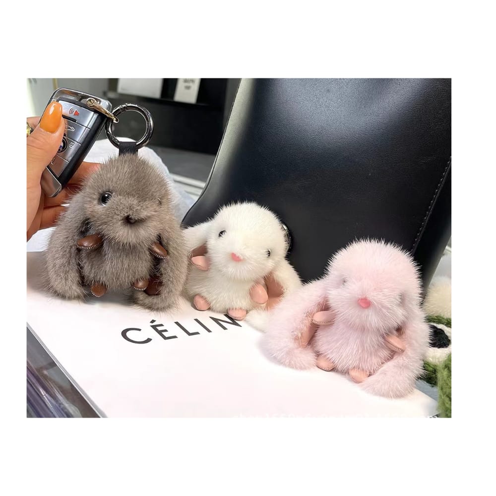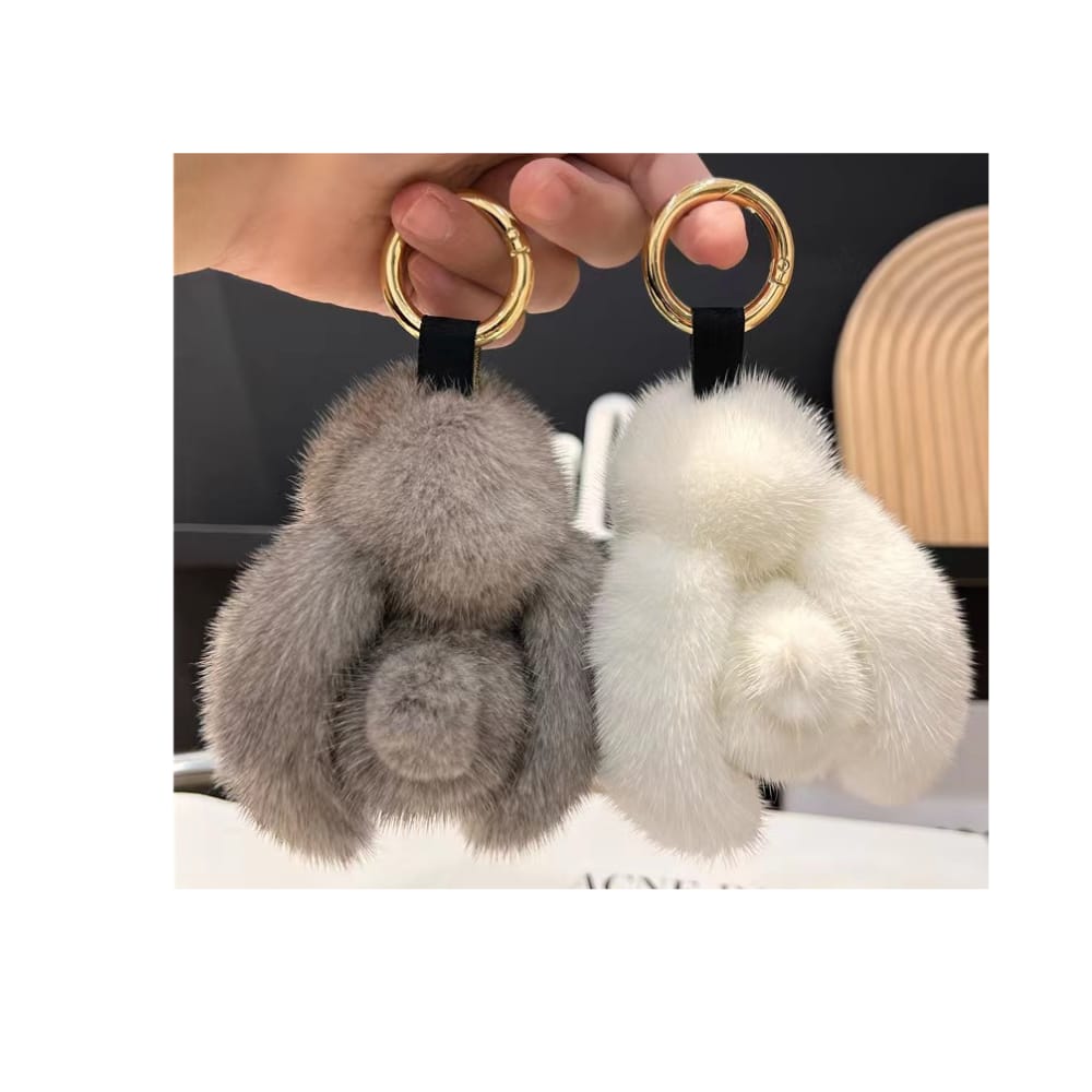 Conejo Minky Visón blanco, llavero peluche súper suave de 11 cm. Muy peludito y adorable. Semi hecho a mano.